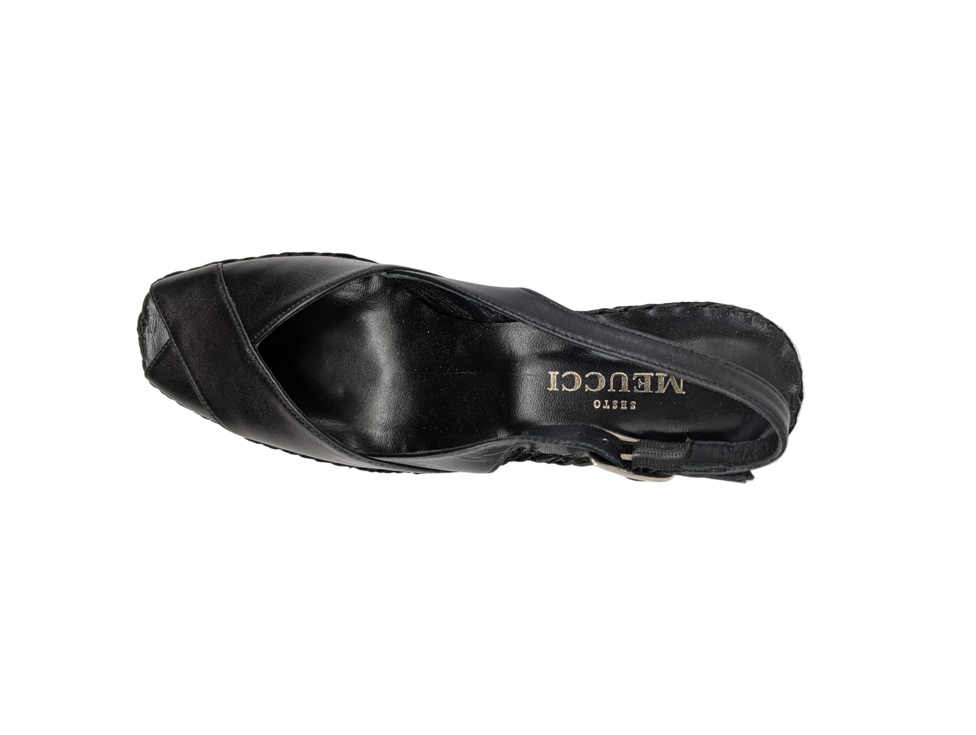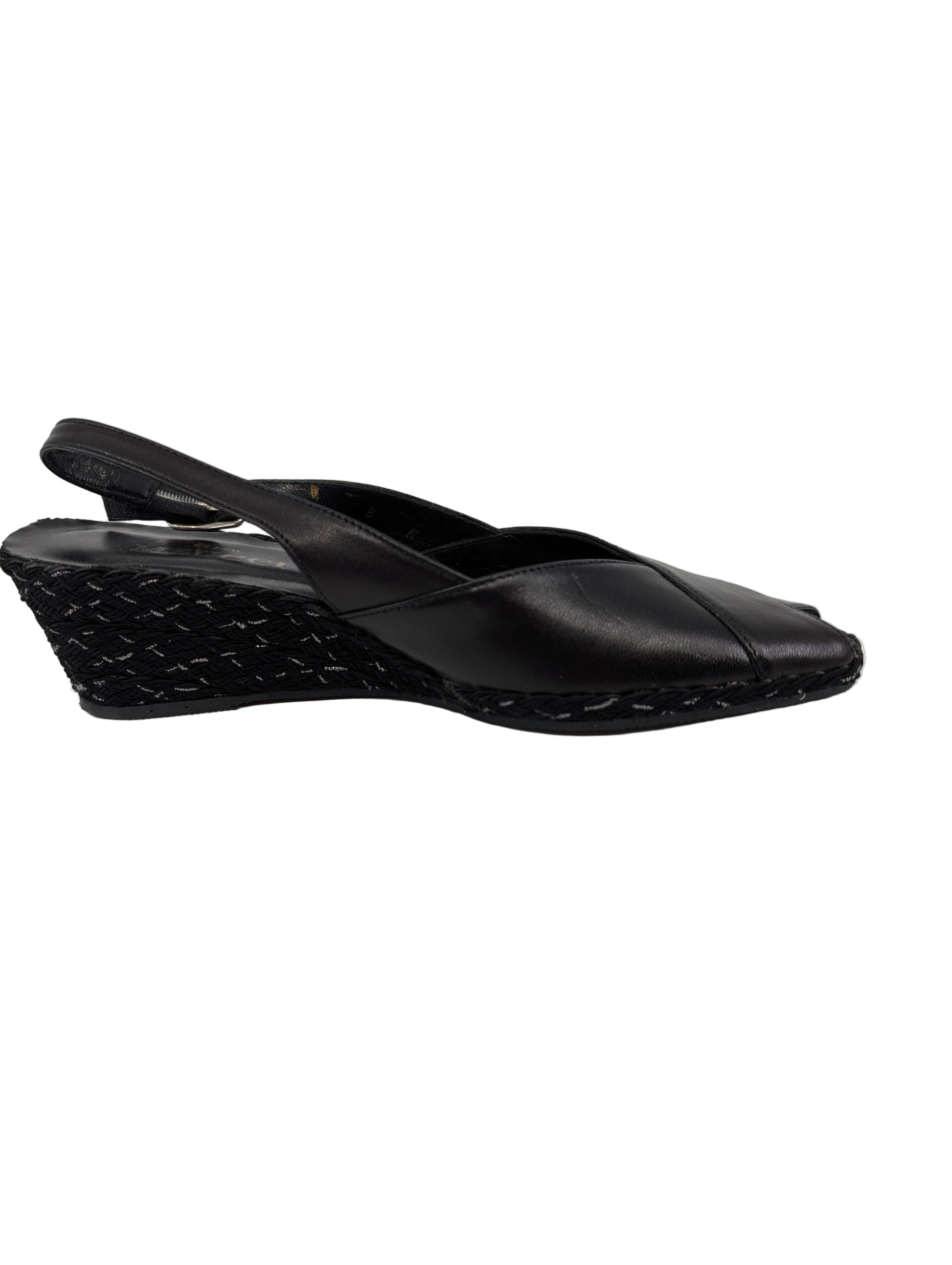 1370 Black Leather Sesto Meucci Slingack Wedge Sandal