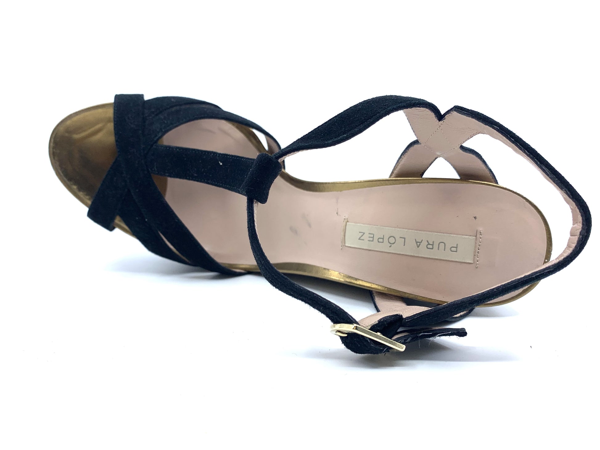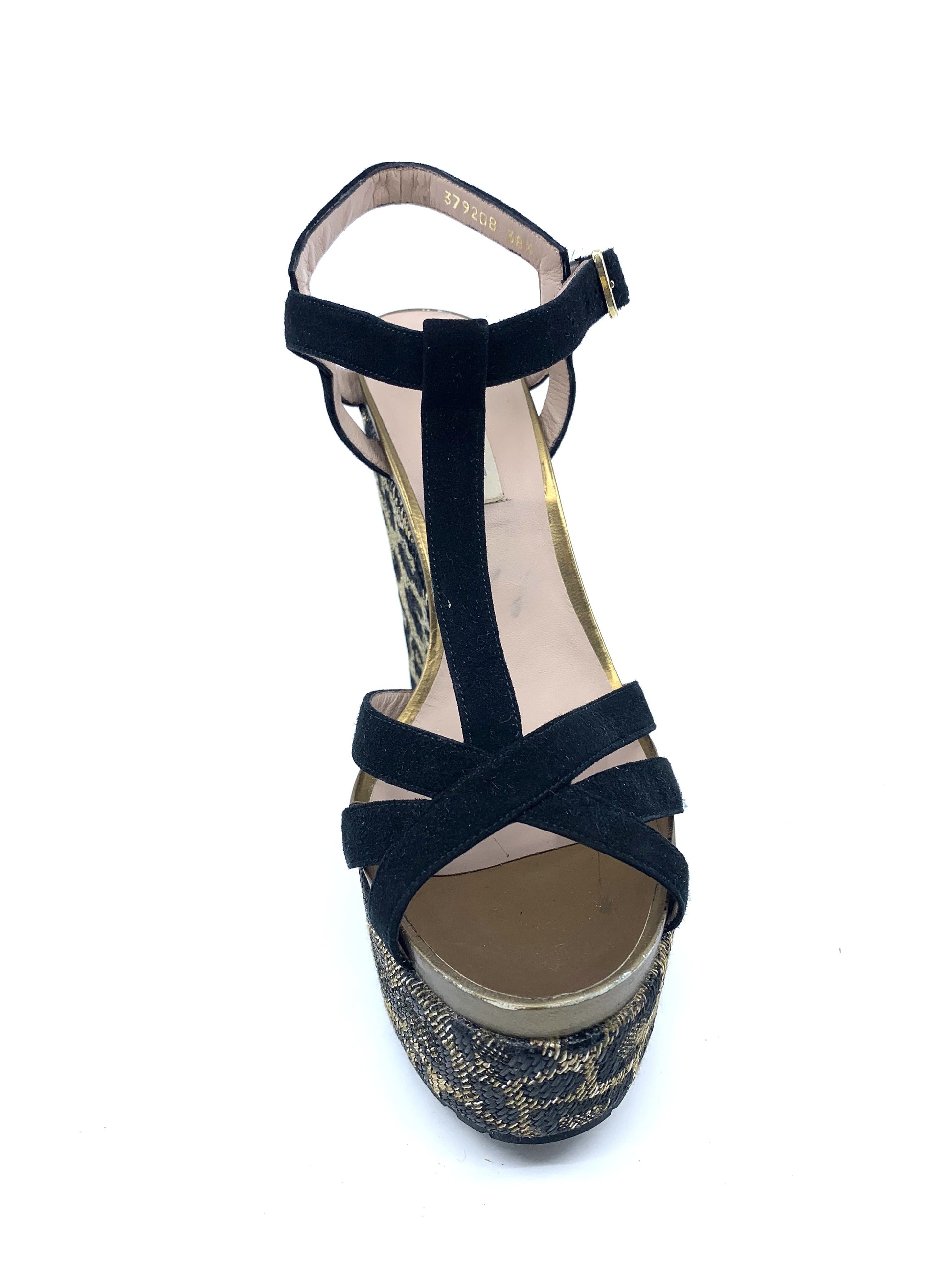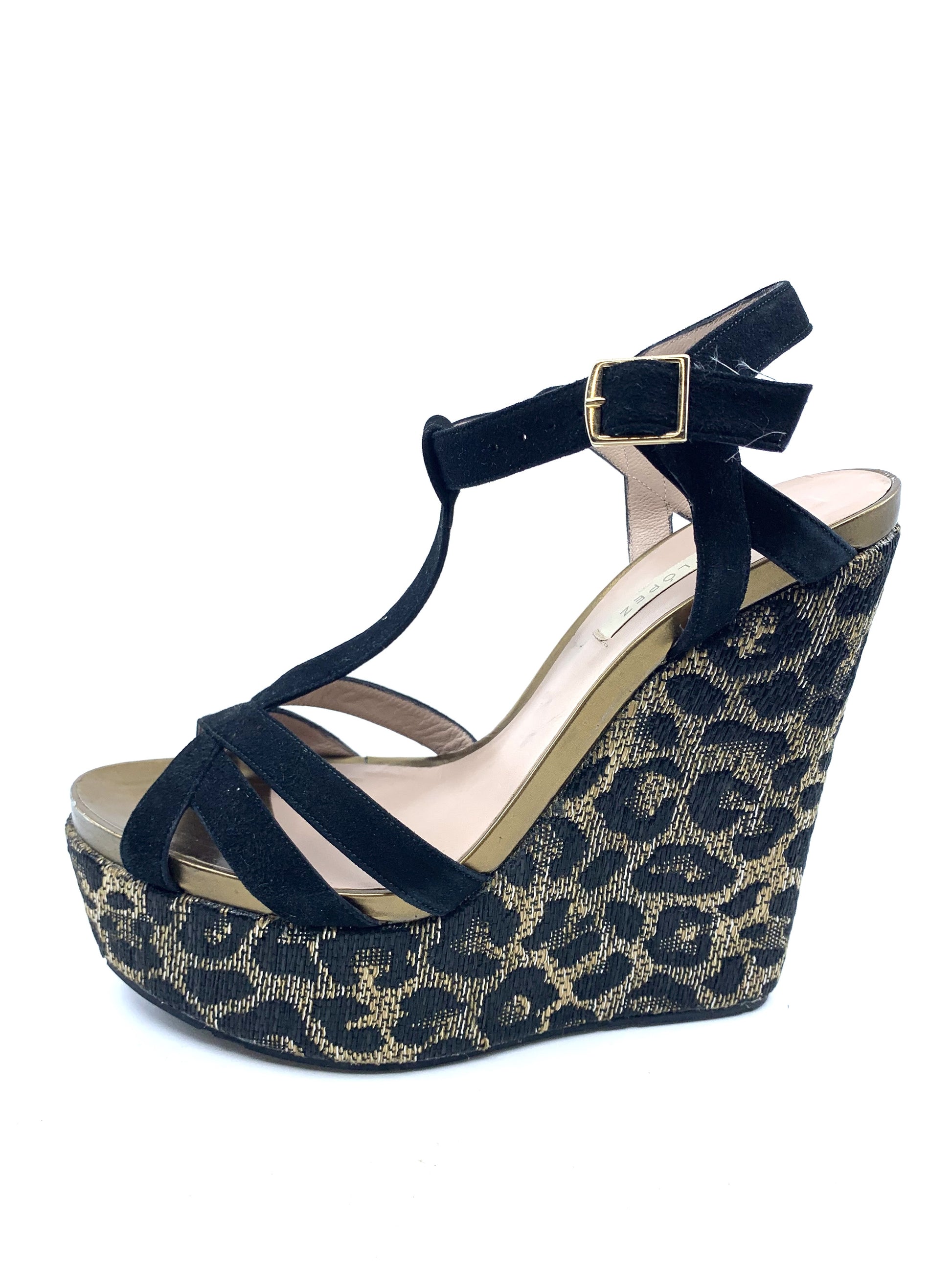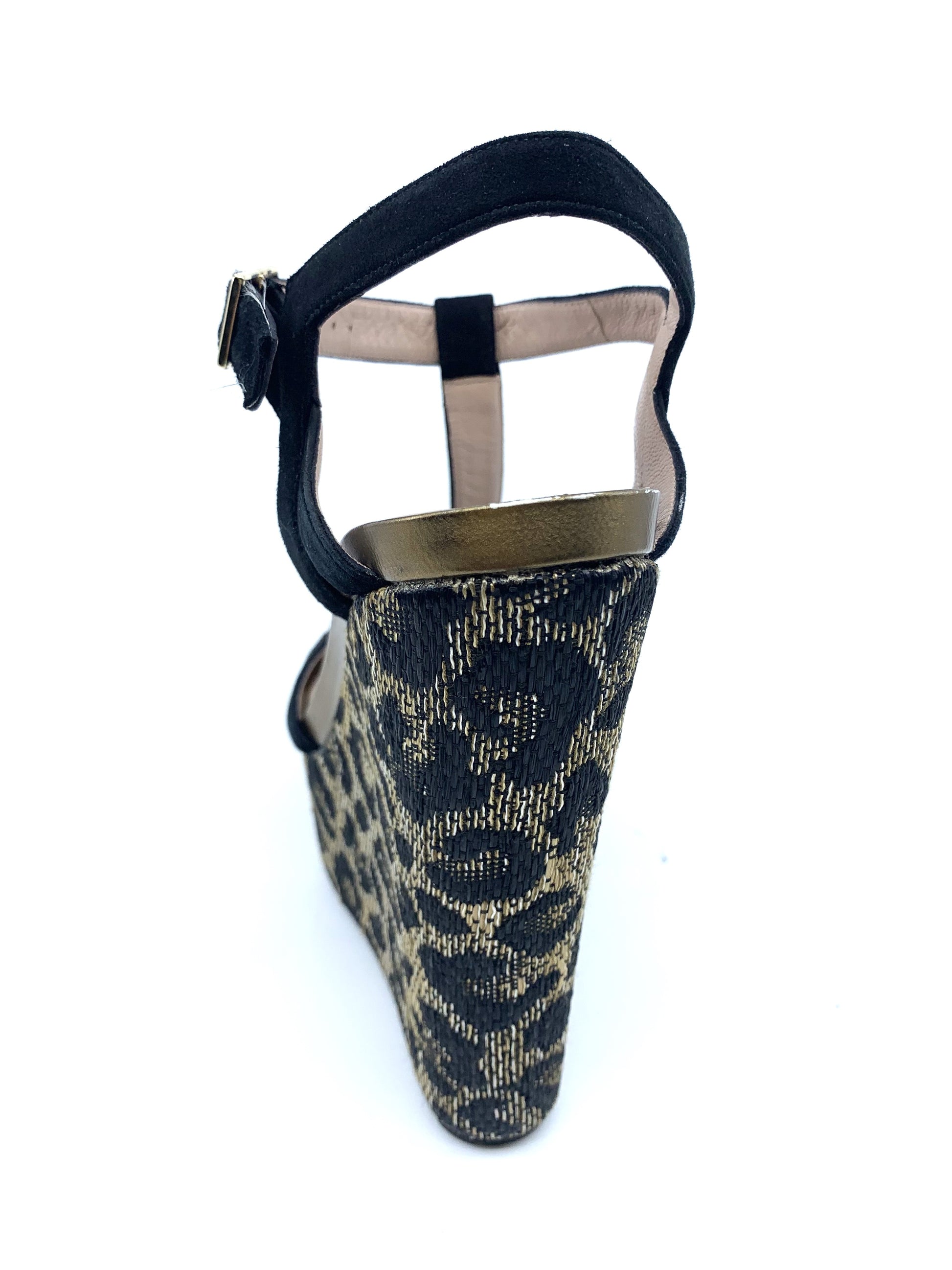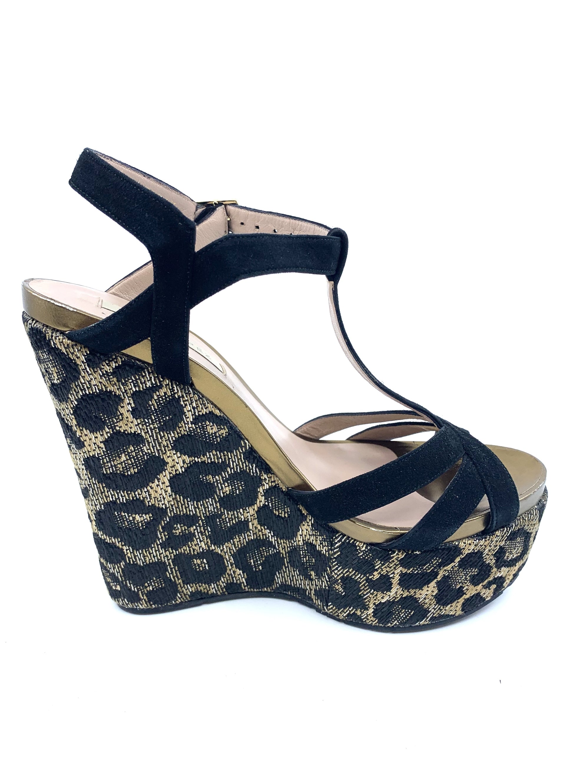 AB900 Black Suede and Raffia Leopard Pura Lopez Wedge Sandals