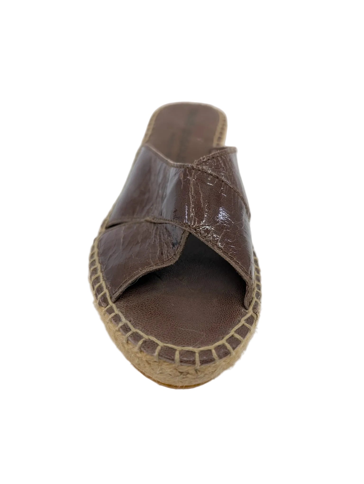 Step into effortless elegance with the André Assous Brown Patent Leather Platform Slide. This sophisticated slip-on features a lustrous patent leather finish that catches the light beautifully, while the sturdy platform sole provides both comfort and a flattering lift. Perfect for transitioning from day to evening, these slides deliver polished style without compromising on wearability. The rich brown tone pairs seamlessly with any wardrobe, making them an investment piece you'll reach for again and again.