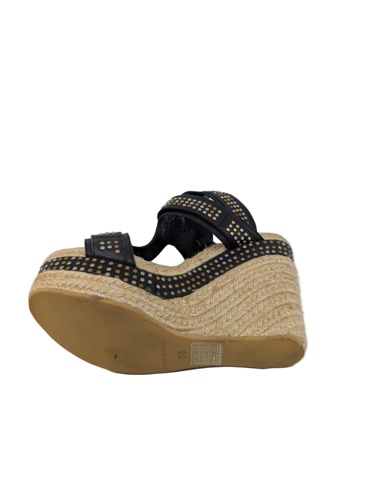 Black Leather Studs Alexander McQueen Wedge Sandals