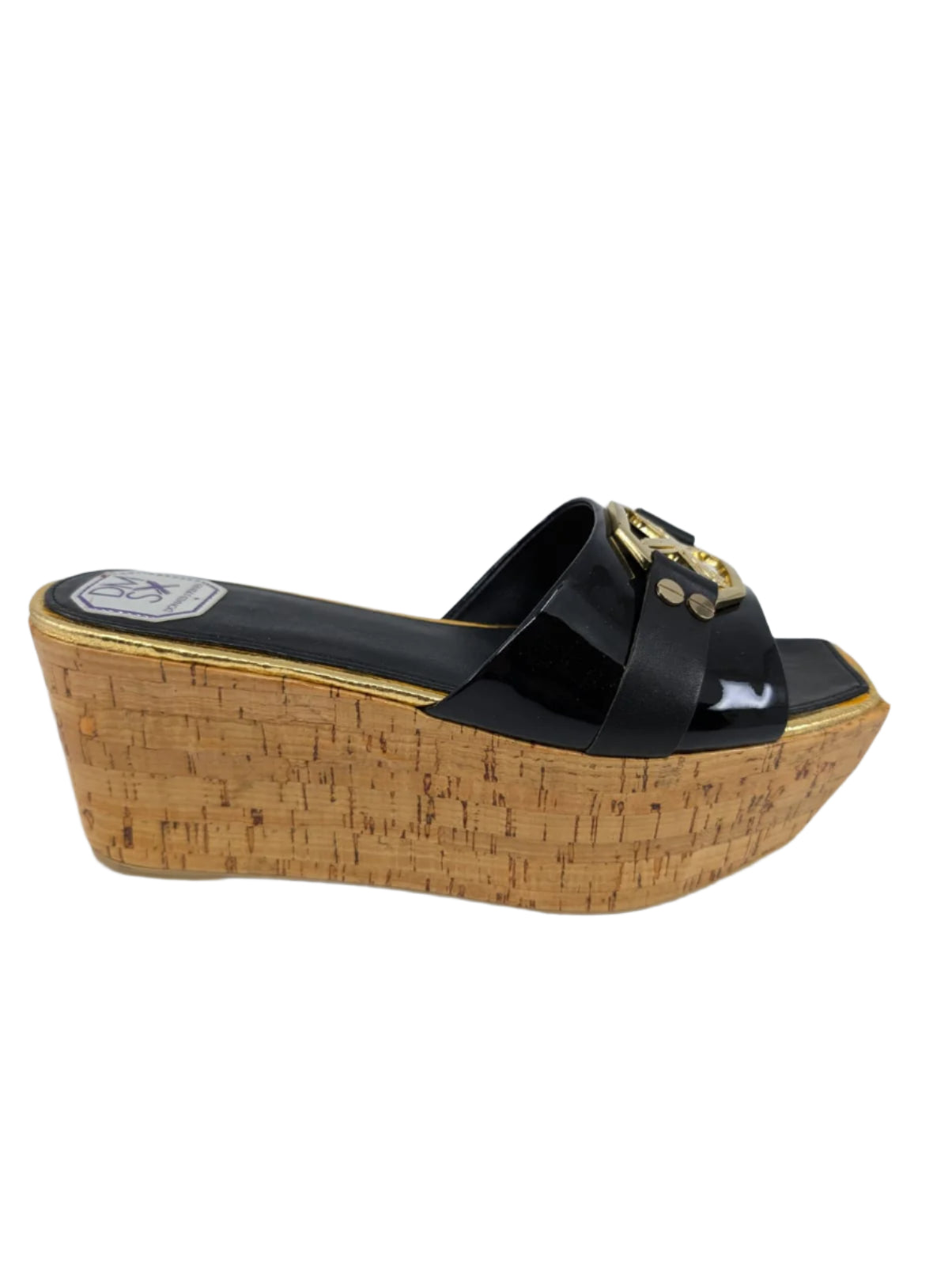 Step into effortless style with the Bren Sungold Soft Patent Leather Donald Pliner Platform Slides. Crafted from soft patent leather, these slides offer a sleek, polished look that elevates any outfit. The platform sole adds comfortable height without sacrificing stability, making them perfect for all-day wear. Whether you're dressing up or keeping it casual, these slides combine fashion and function seamlessly.