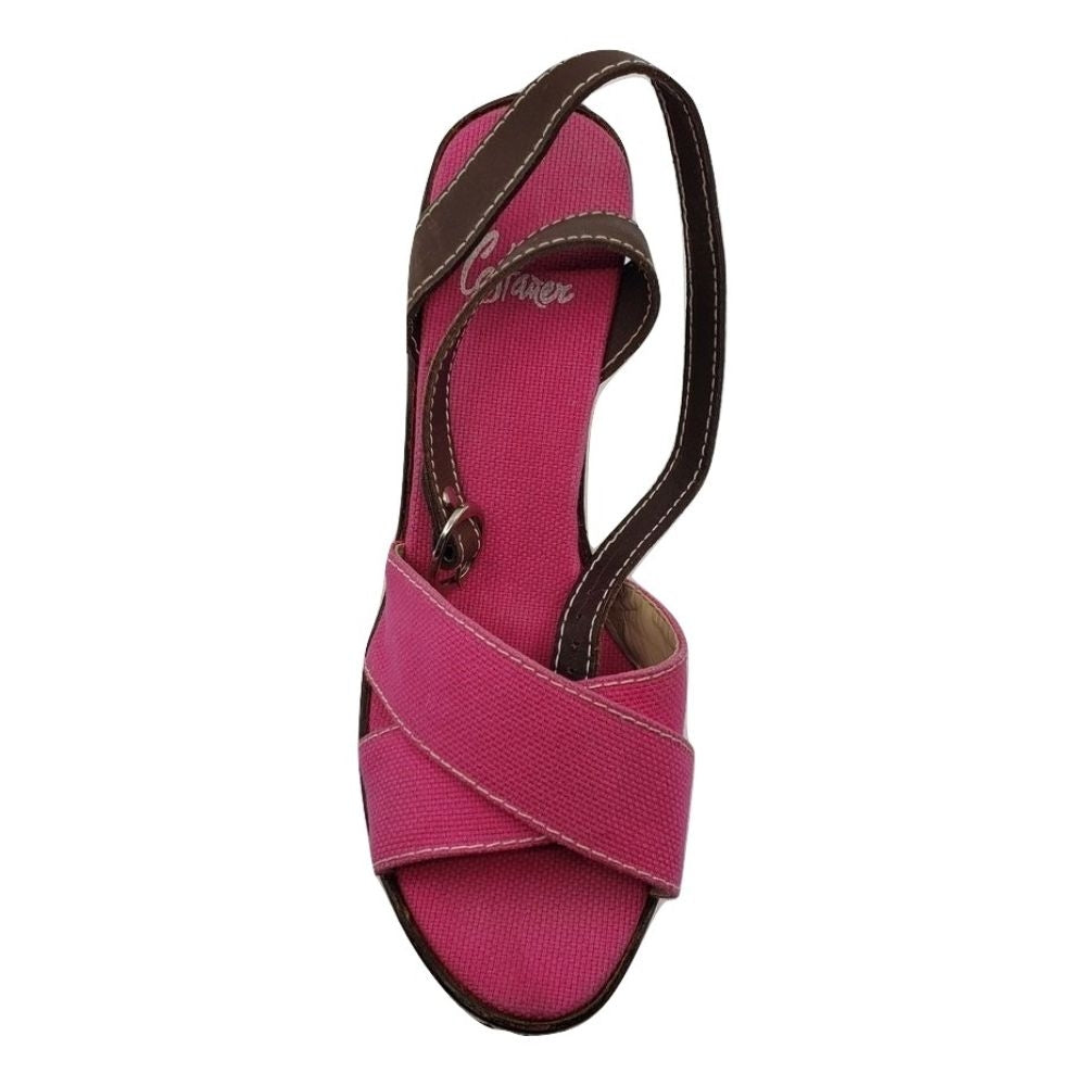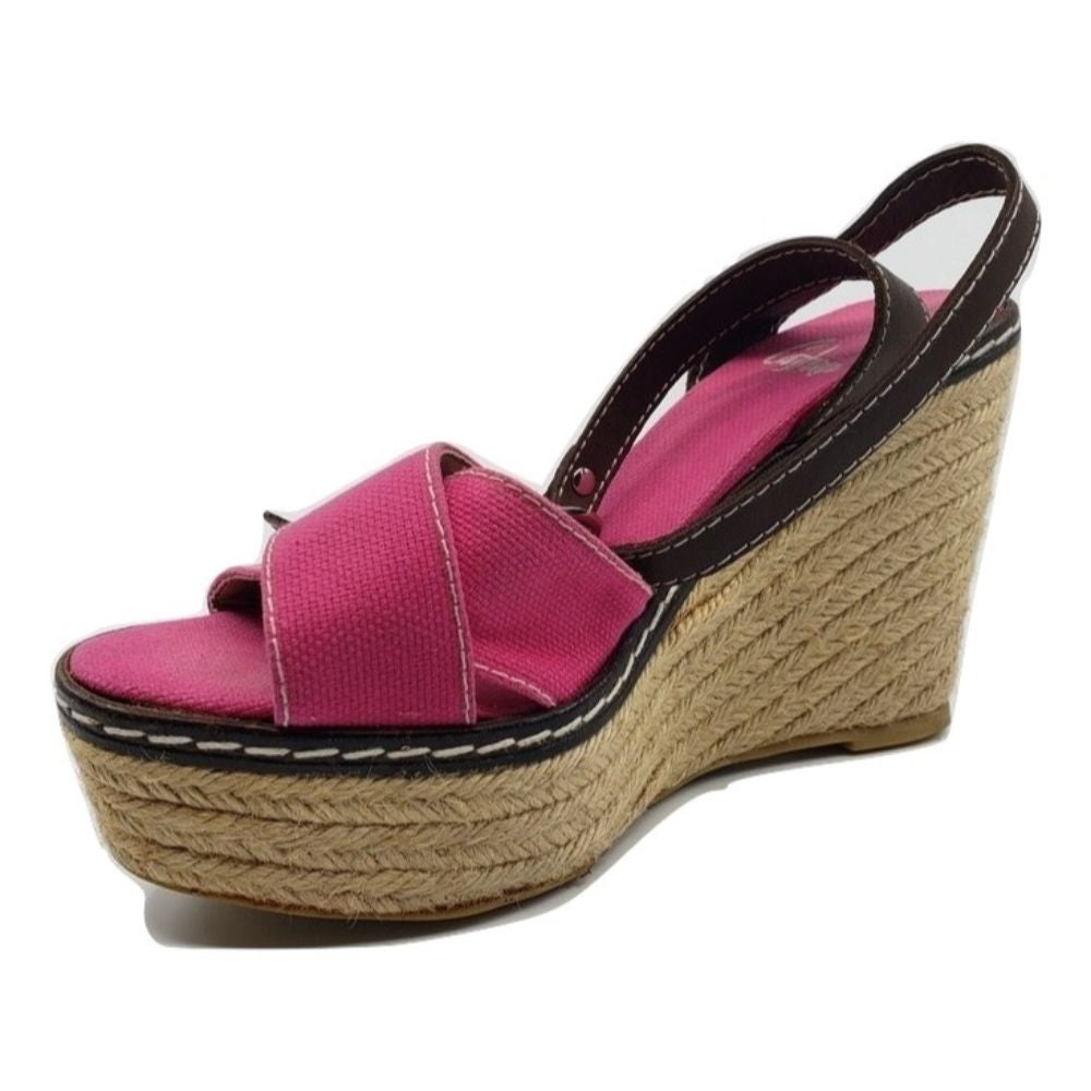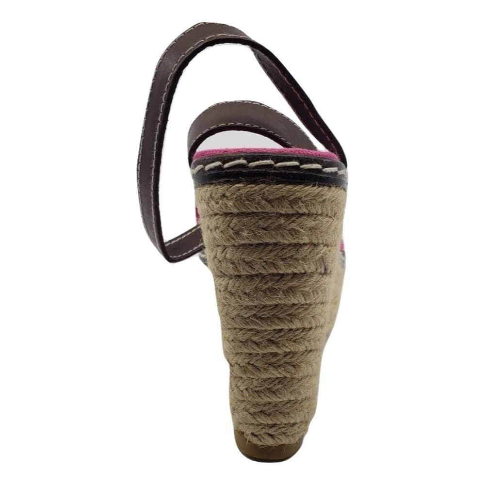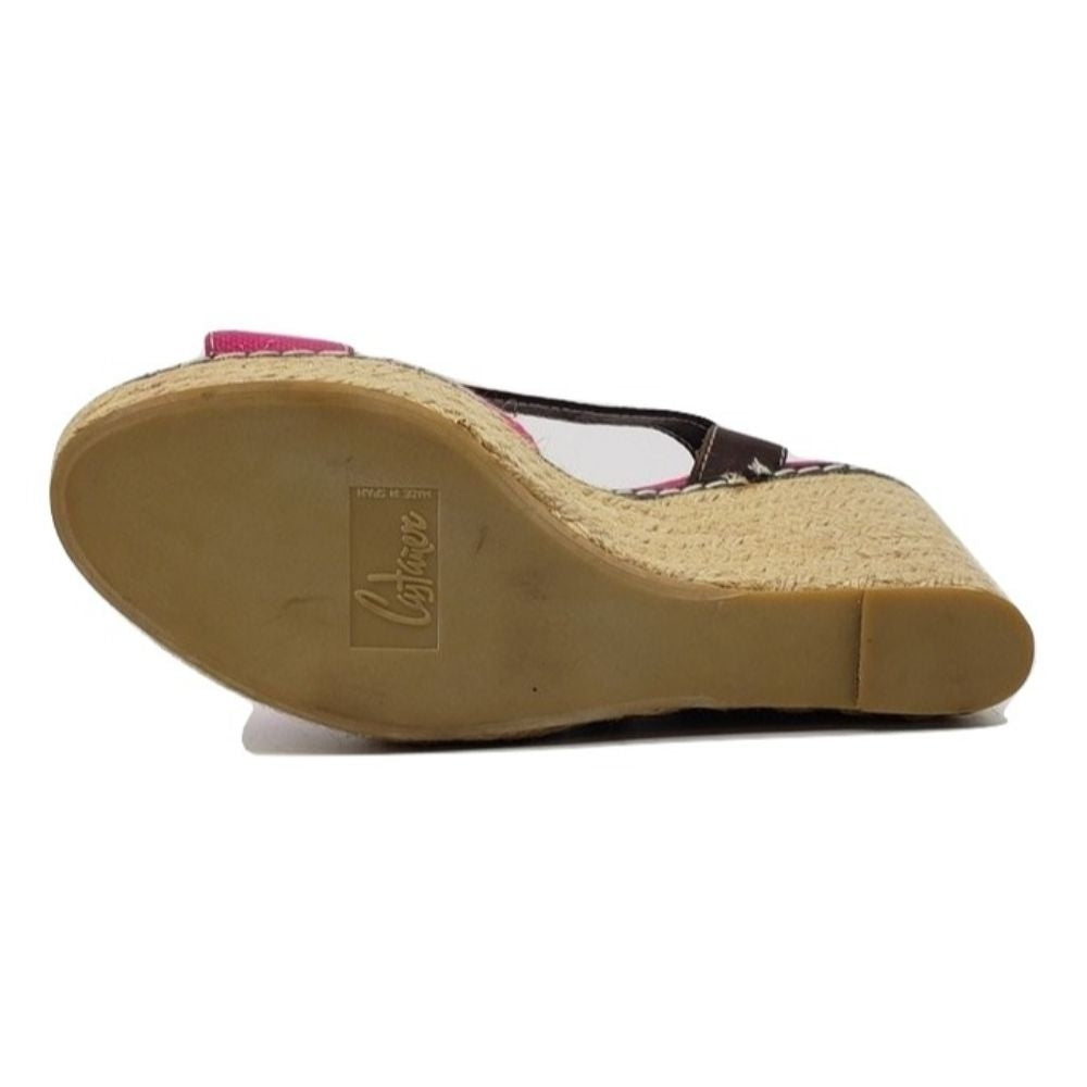 Castañer Pink Fabric Raffia Wedge Sandals