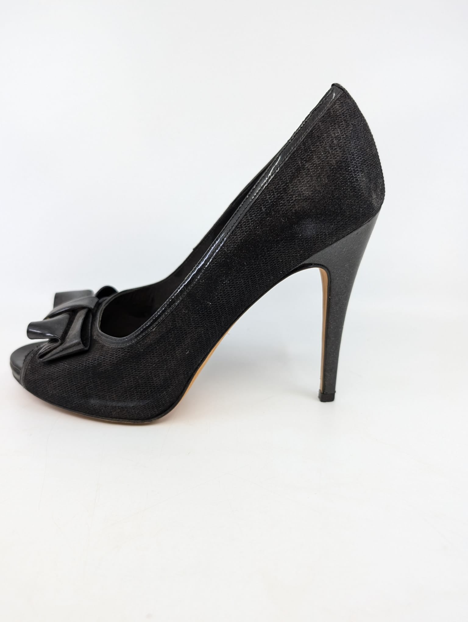 Cheri Black Metallic Fabric Suede Delman Pumps
