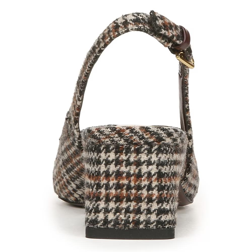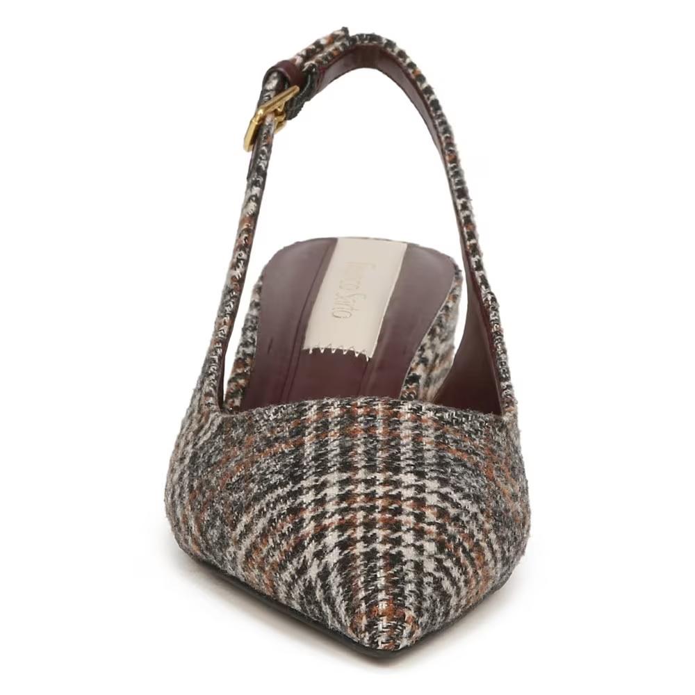 Franco Sarto Women's Racer Slingback Brown Plaid Fabric Low Block Heel Pointed Toe Pump