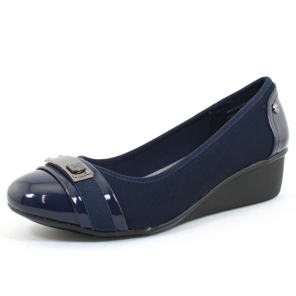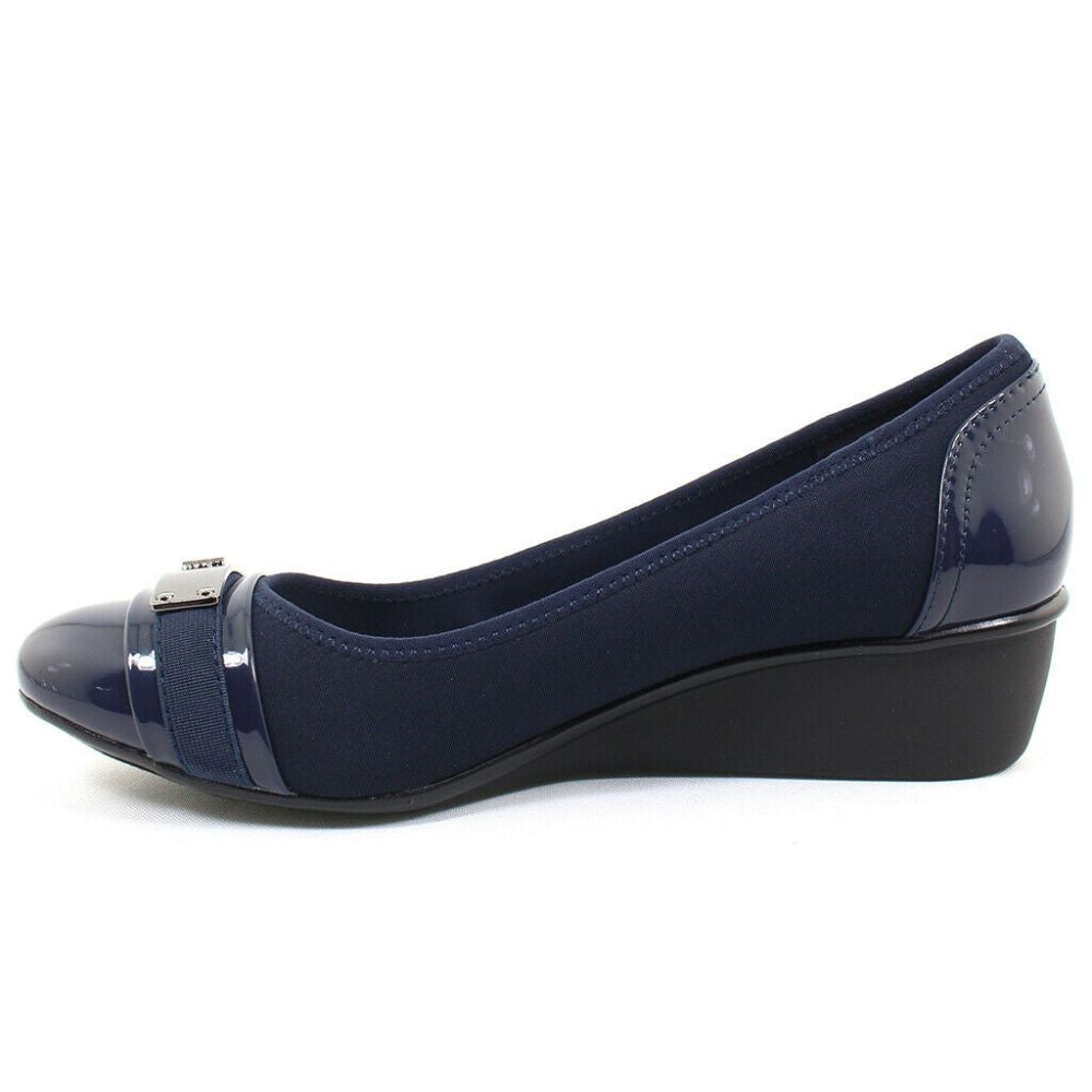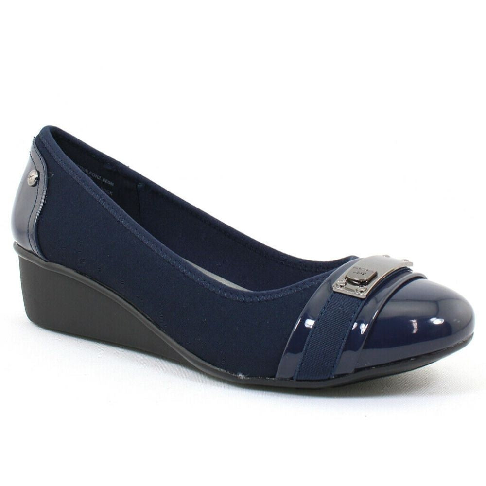 Dalfon Navy Fabric Anne Klein Wedge Pumps