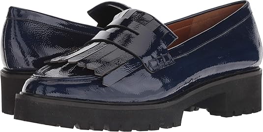 A lugged sole adds a bit of edginess to the classic profile of this patent-leather kiltie loafer.