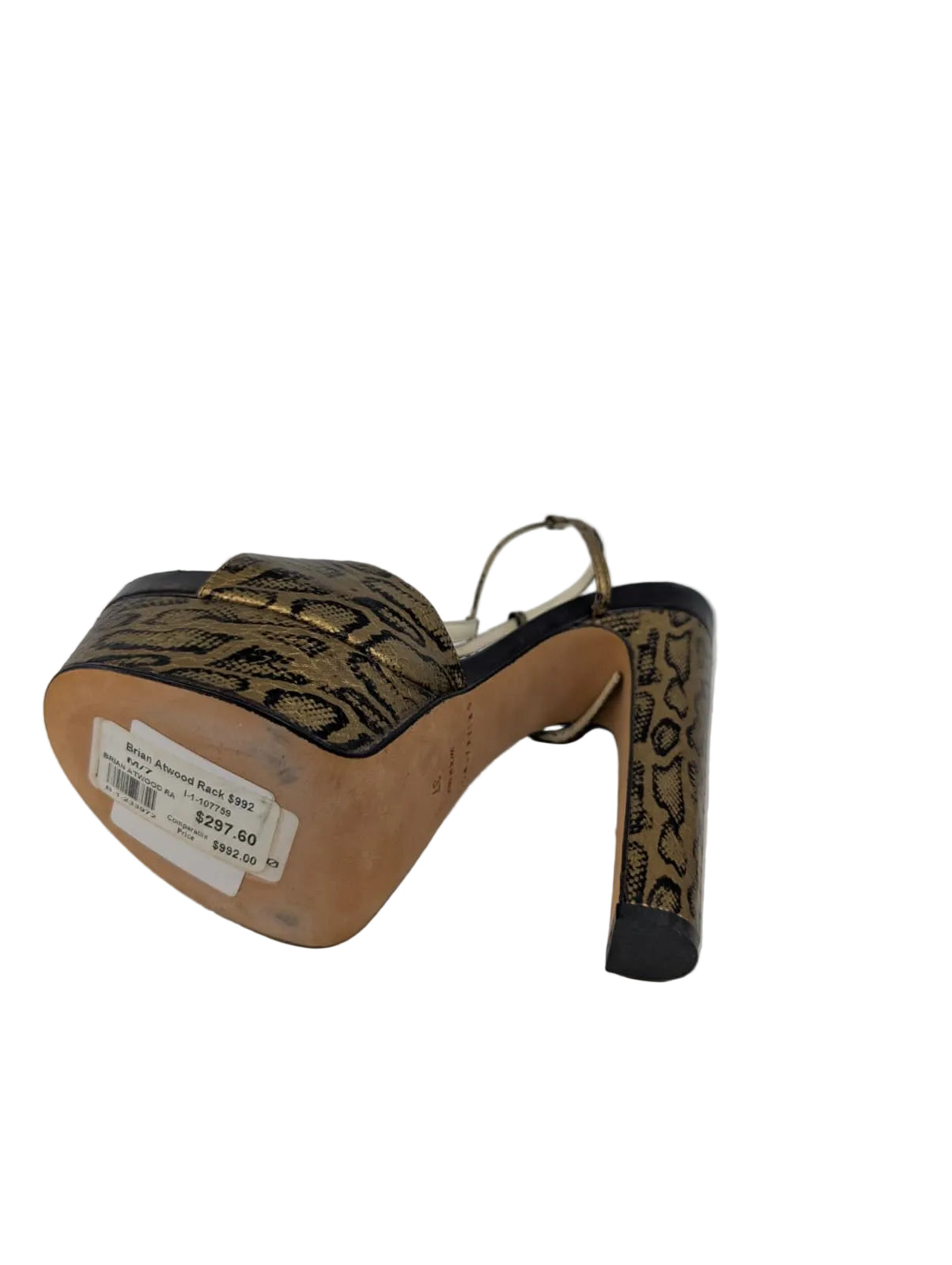 Step into luxury with these stunning Gold Leather Brian Atwood Platform Sandals. Crafted from premium leather in a radiant gold finish, these designer sandals deliver the perfect blend of sophistication and comfort. The elevated platform sole provides a flattering lift while ensuring all-day wearability, making them ideal for everything from evening events to upscale casual outings. The sleek silhouette and timeless design make these sandals a versatile investment piece that effortlessly elevates any wardrobe. Experience the confidence that comes with wearing iconic designer footwear.
