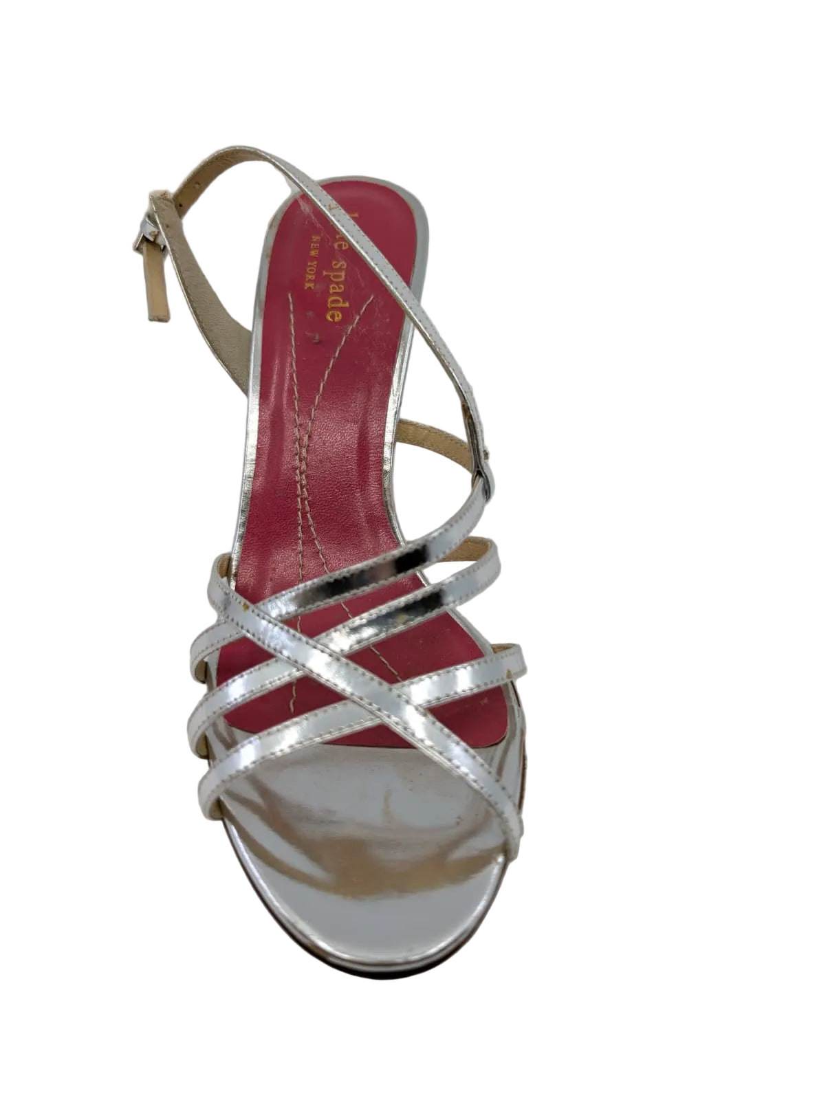 Step into effortless elegance with these Kate Spade silver leather strappy sandals. Crafted from premium leather, they feature delicate straps that offer secure support without sacrificing style. The lustrous silver finish pairs seamlessly with any warm-weather wardrobe, from casual daytime looks to evening occasions. Whether you're heading to brunch or a night out, these versatile sandals deliver the perfect blend of comfort and sophistication that only Kate Spade can provide.