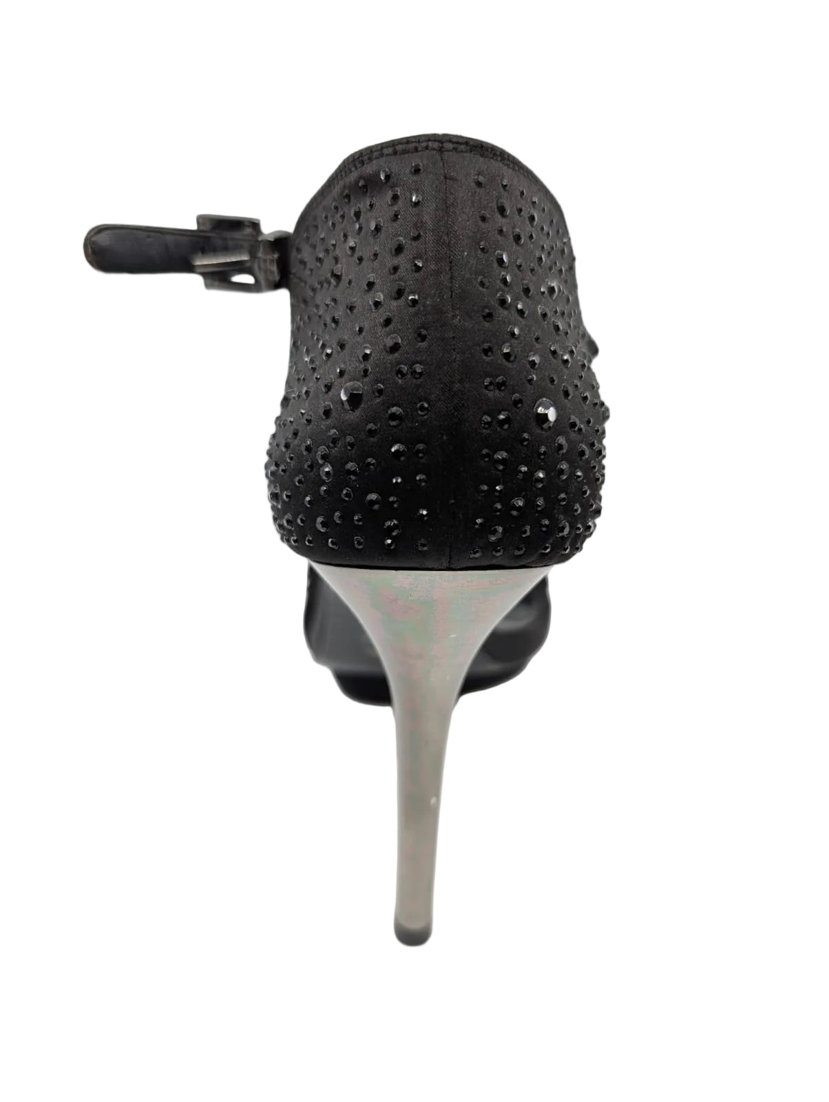 Elevate your evening look with these stunning Peeking Black Satin BCBG Sandals. Crafted from luxurious satin in a sophisticated black finish, these sandals deliver timeless elegance for any occasion. The sleek design pairs effortlessly with dresses, skirts, or tailored pants, making them a versatile addition to your wardrobe. Perfect for cocktail events, dinners, or nights out, these BCBG sandals combine refined style with comfortable wear. Step into confidence and make a lasting impression with this must-have footwear essential.