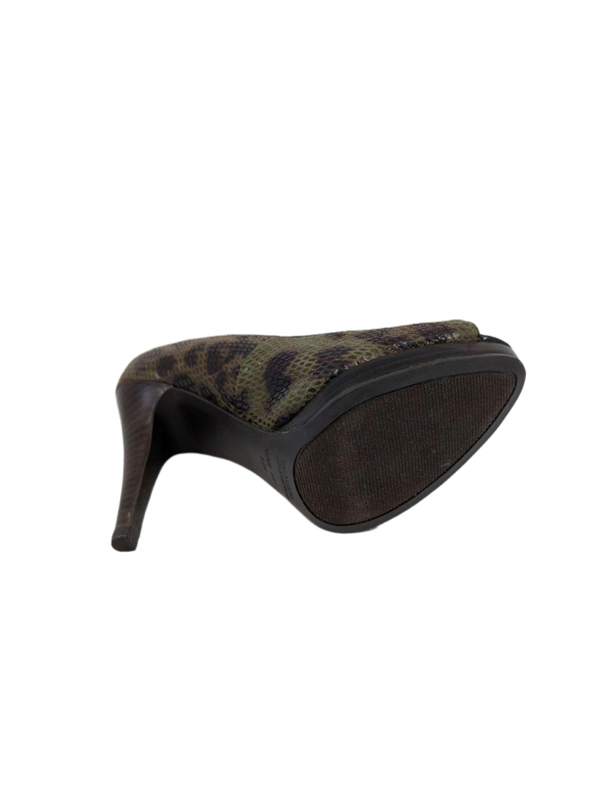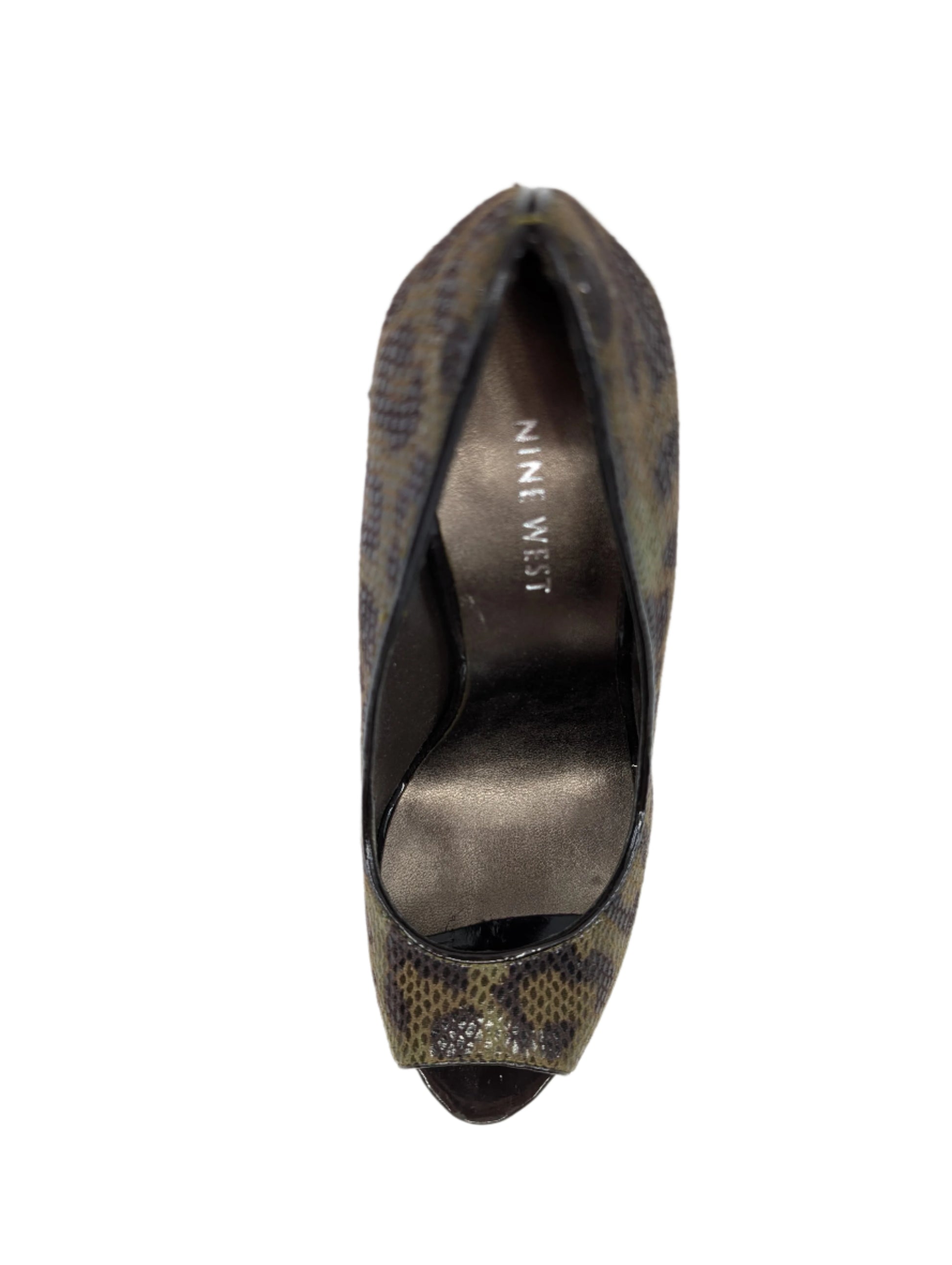 Portofino Dark Green and Brown Fabric Nine West Pumps