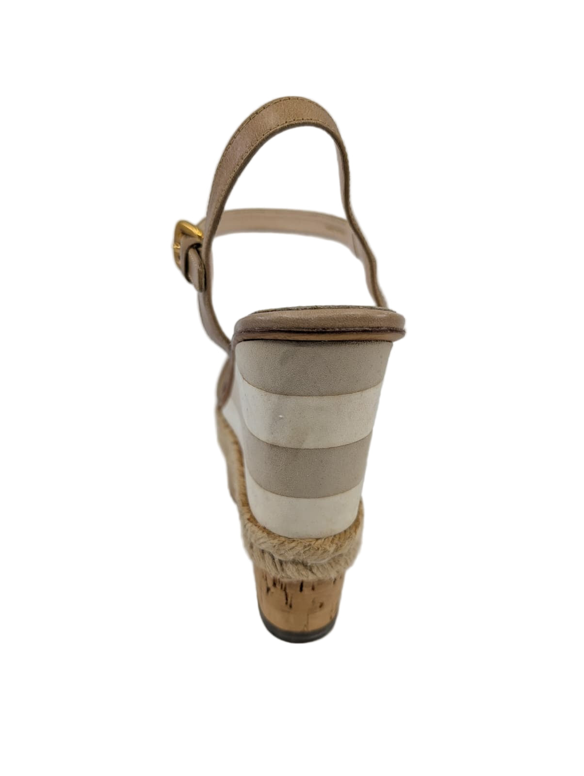 Elevate your summer wardrobe with these sophisticated Prada beige leather wedge sandals. Crafted from premium leather, they deliver timeless elegance with a comfortable wedge heel that provides all-day wearability. The neutral beige tone pairs effortlessly with any outfit, from casual daytime looks to evening ensembles. Perfect for those who appreciate luxury footwear without compromising on comfort. A versatile investment piece that transcends seasons and trends.