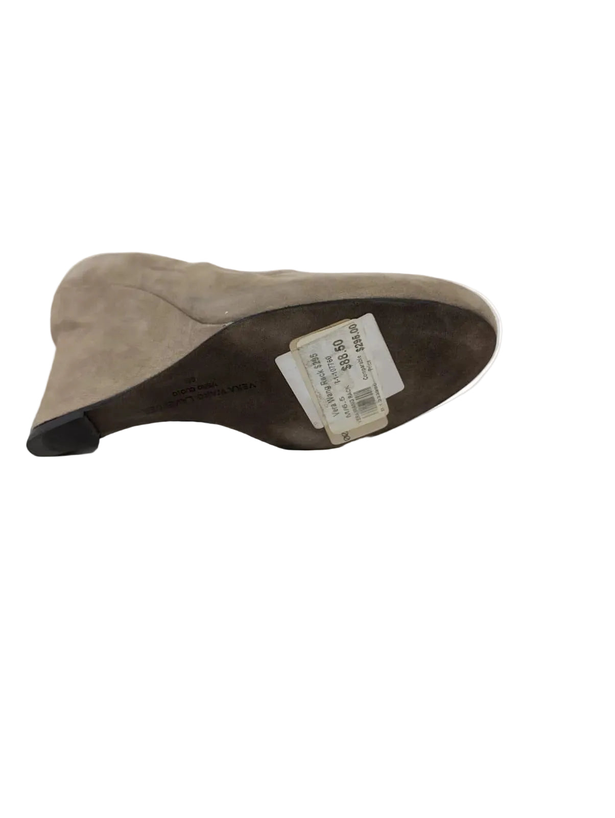 Elevate your everyday elegance with these sophisticated Vera Wang gray suede wedge pumps. Crafted from luxurious suede in a versatile neutral shade, these pumps seamlessly transition from office to evening. The comfortable wedge heel provides all-day wearability without sacrificing style, while the refined silhouette flatters any outfit. Perfect for the modern woman who demands both comfort and timeless sophistication. Step into confidence with a designer shoe that delivers on every level.